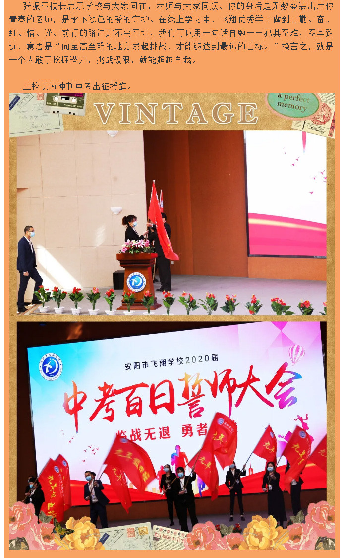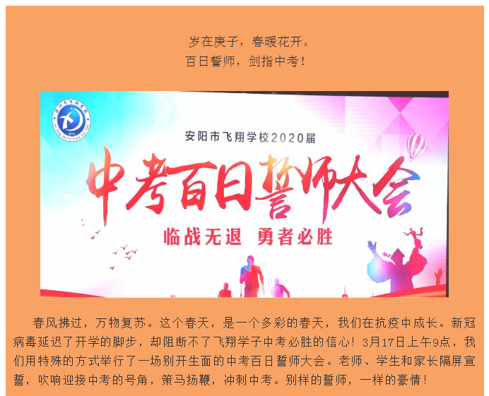 臨戰無退,勇者必勝——安陽市飛翔學校2020屆中考沖刺百日誓師大會