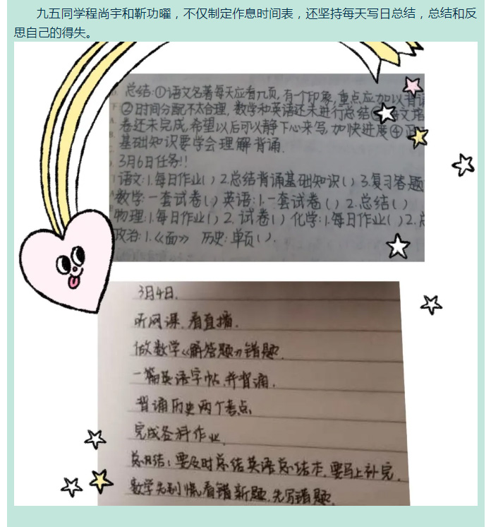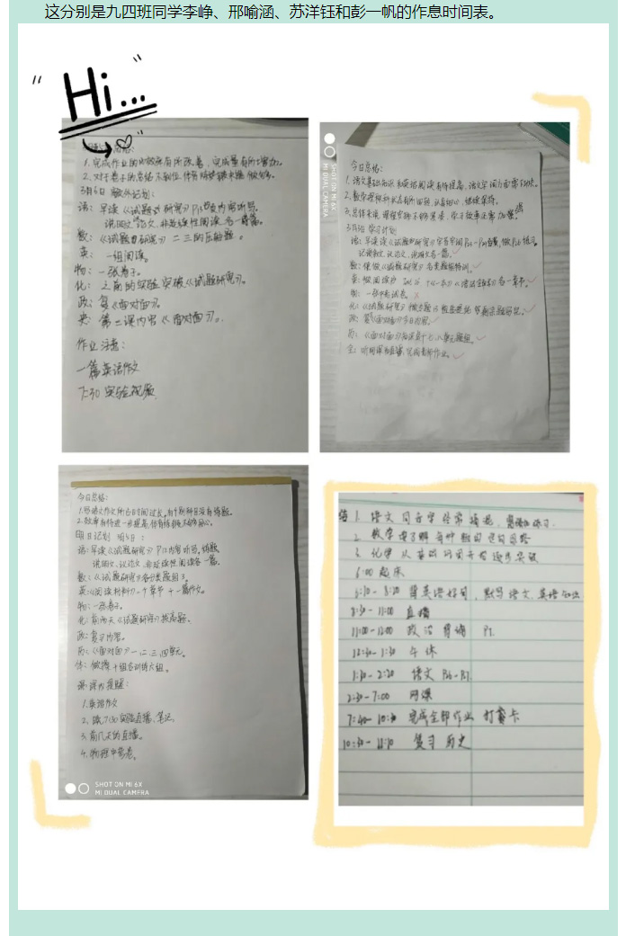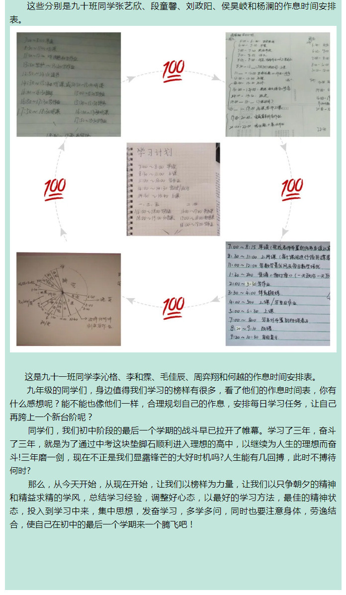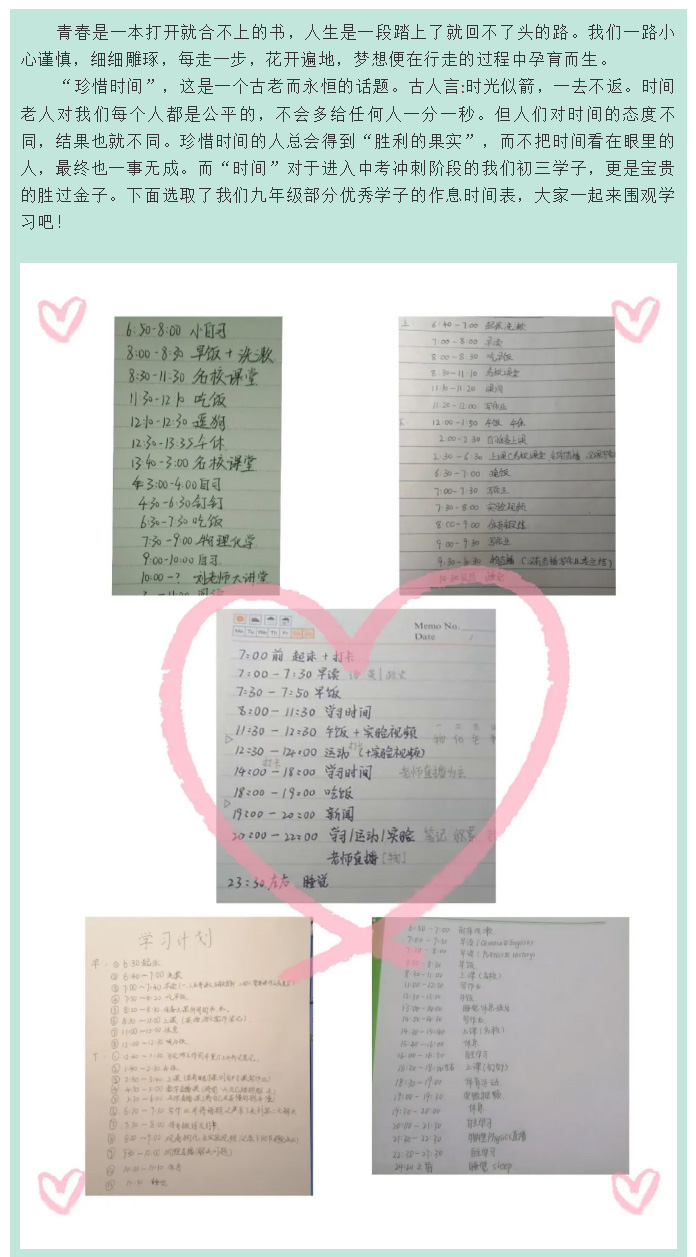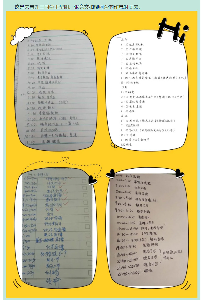 戰(zhàn)“疫”中的飛翔學(xué)子之篇十三——九年級(jí)優(yōu)秀學(xué)生作息時(shí)間展