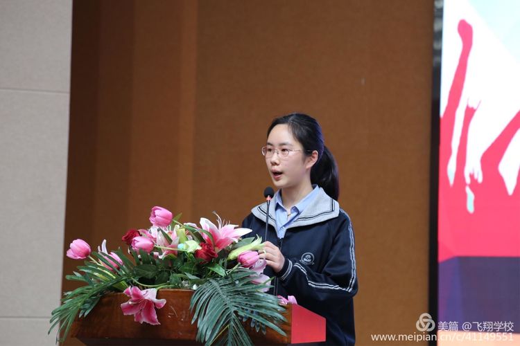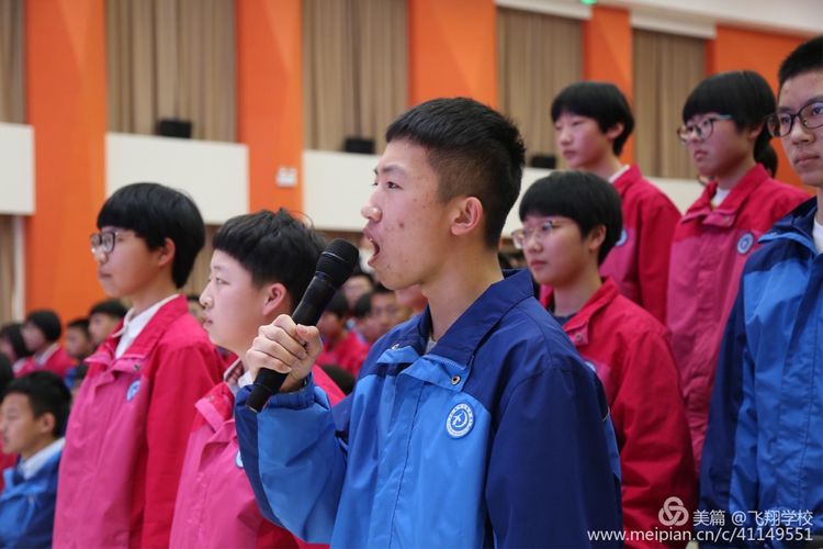 作為飛翔的首屆畢業生,他們承擔著飛翔學校騰飛的責任和使命。九年級四班的張峻源代表同學們發表了大家奮戰百日的誓言。