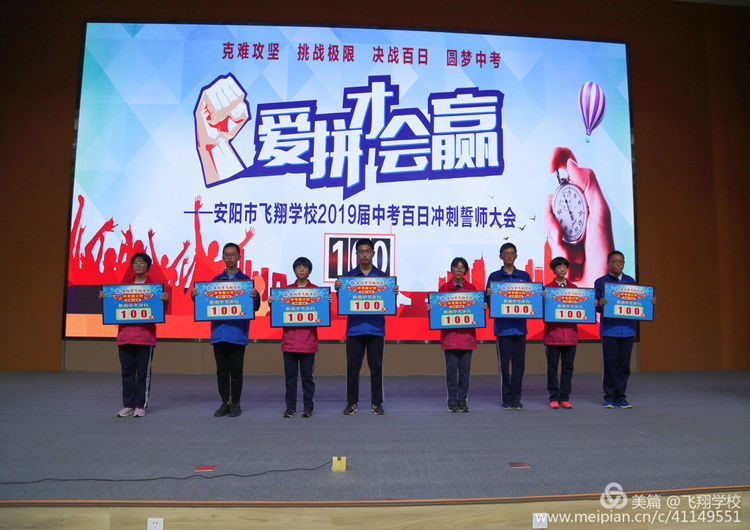 沖刺的100天,是造就人生輝煌的100天。直面現實,迎接挑戰,破釜沉舟,背水一戰!最后全體學生起立,喊出那早已烙在心中的誓言!