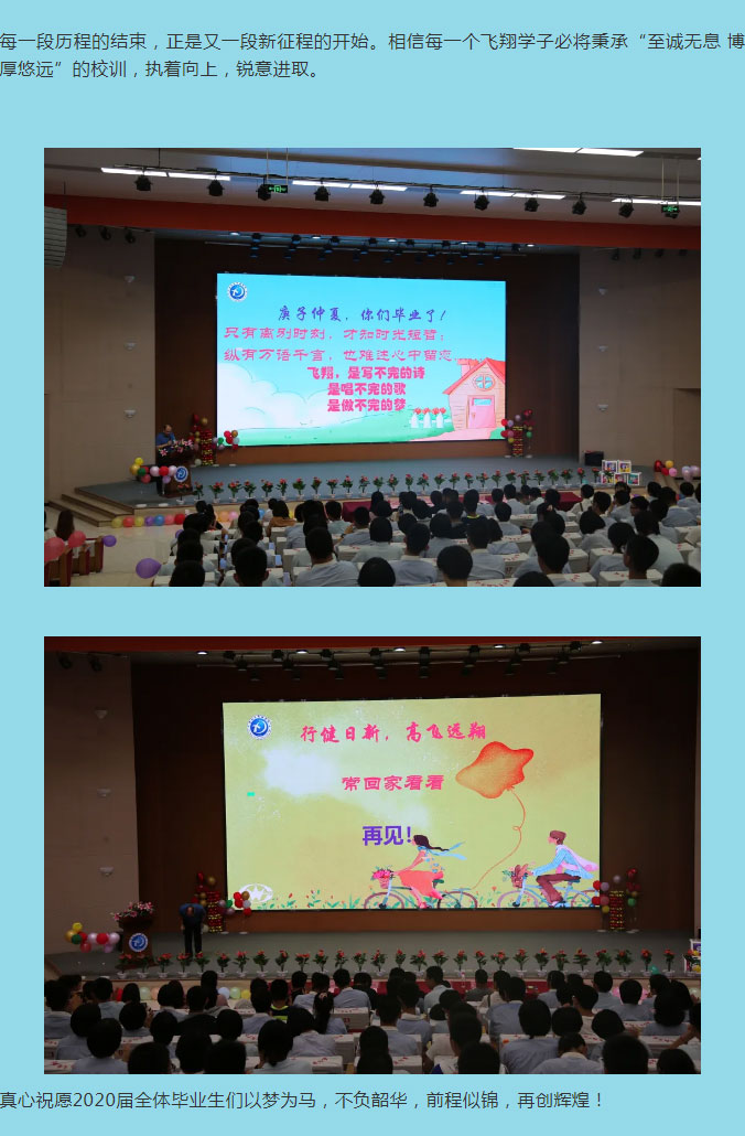 青春不散場 有翼自飛翔——安陽市飛翔學校初中部隆重舉行2020屆學生畢業典禮