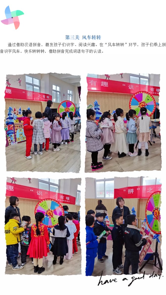 校園美初冬暖陽,兒童拼音識字忙。在谷校長的大力支持下,課題組老師的指導下,一年級老師精心策劃,構建了豐富多彩的拼音形式和識字途徑。12月9日,小萌娃們在學校舞蹈室開啟了趣味拼音識字大闖關活動!