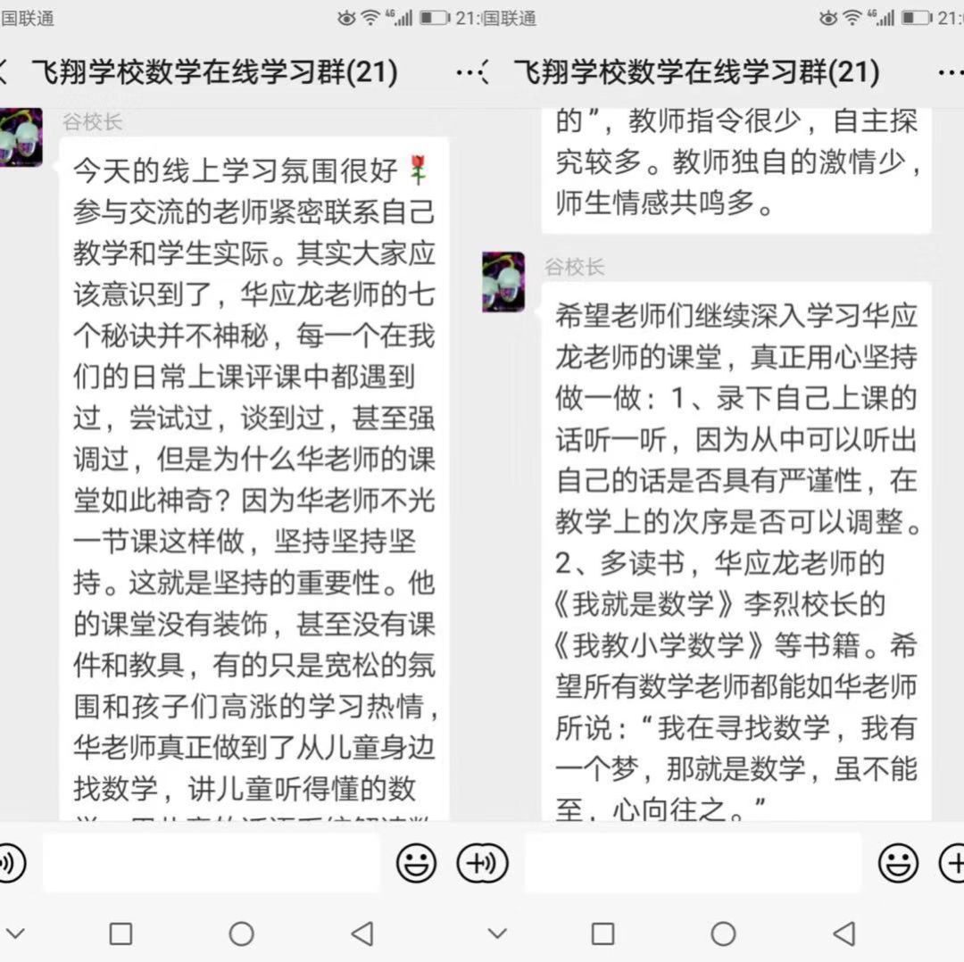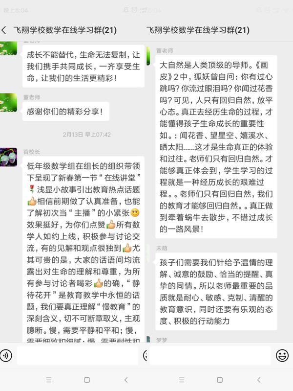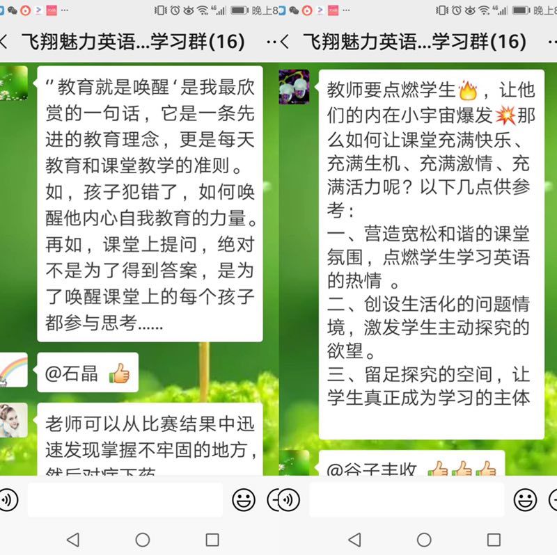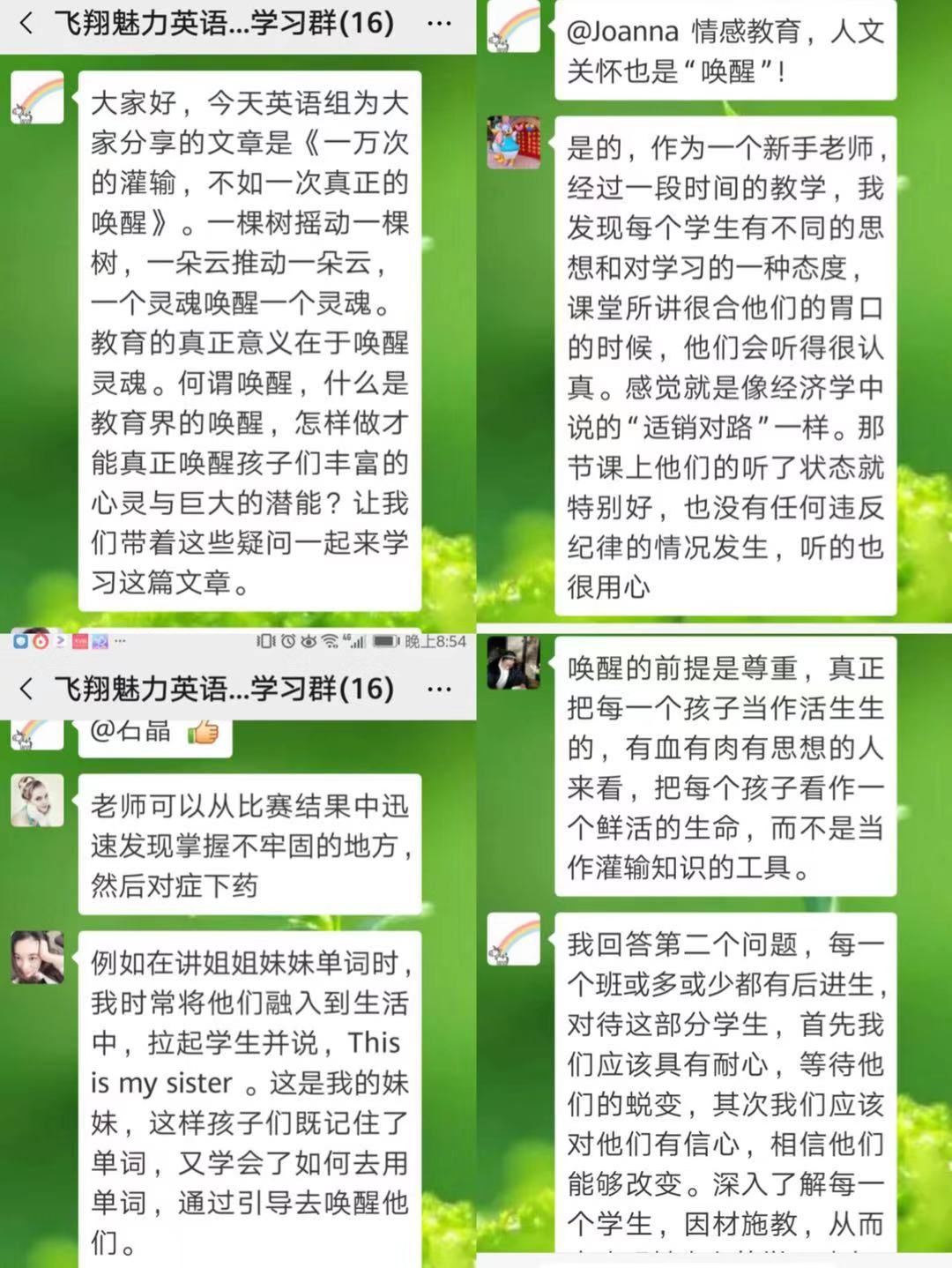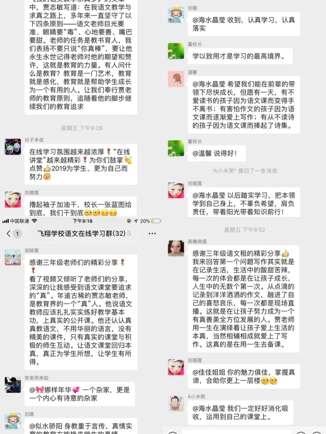 本期“在線學習”活動圓滿結束。此活動得到了學校領導的肯定和贊揚。每一次交流都是智慧的啟迪,每一次學習都是生命的成長。這次學習不僅提升了教師們的專業素養,更重要的是激發了教師學習和工作的熱情,凝聚了團隊,也帶給所有參與的老師們深深的思考,提醒我們只有豐厚學識,才能成為學者型、智慧型教師。