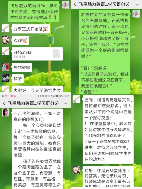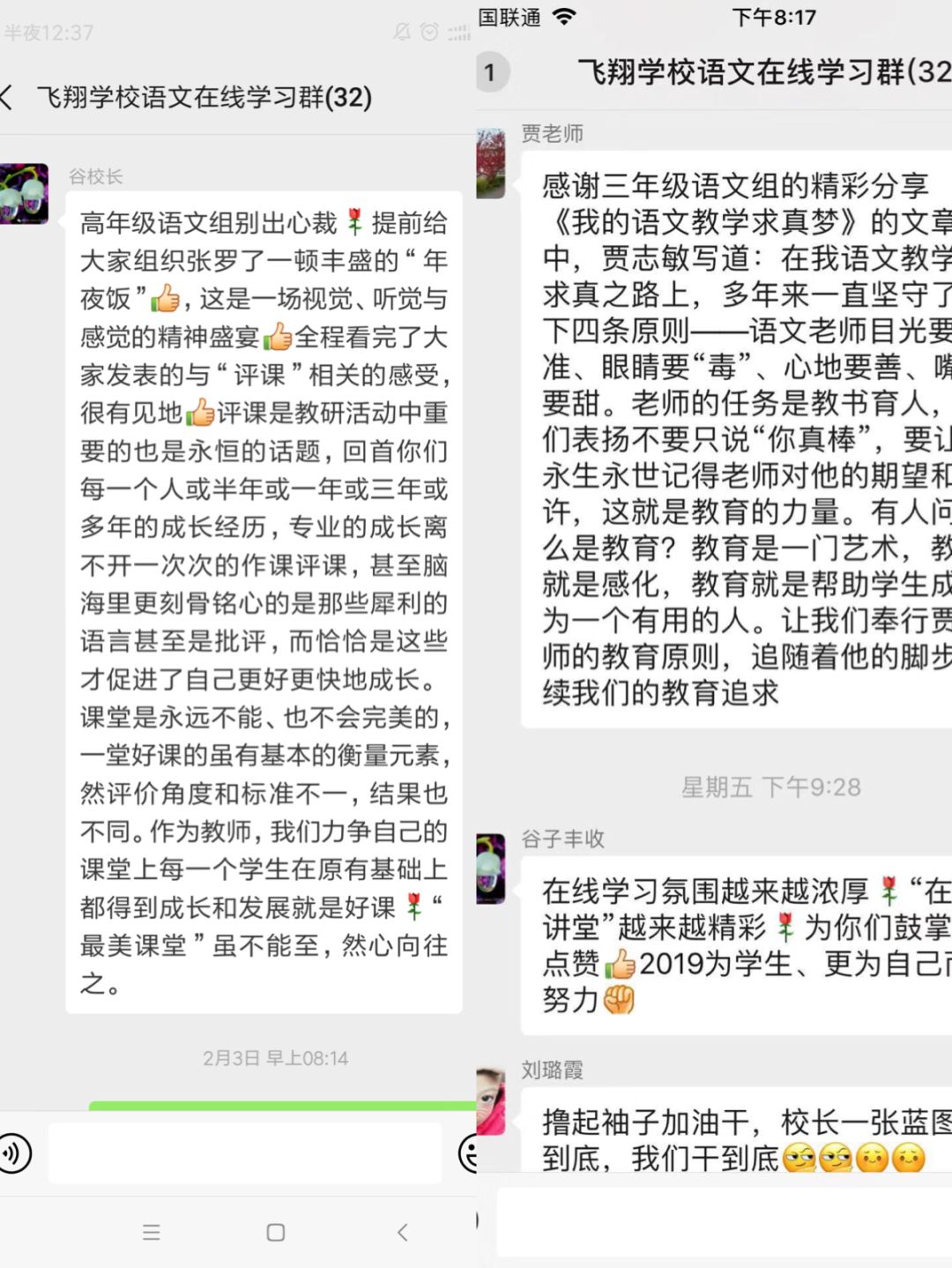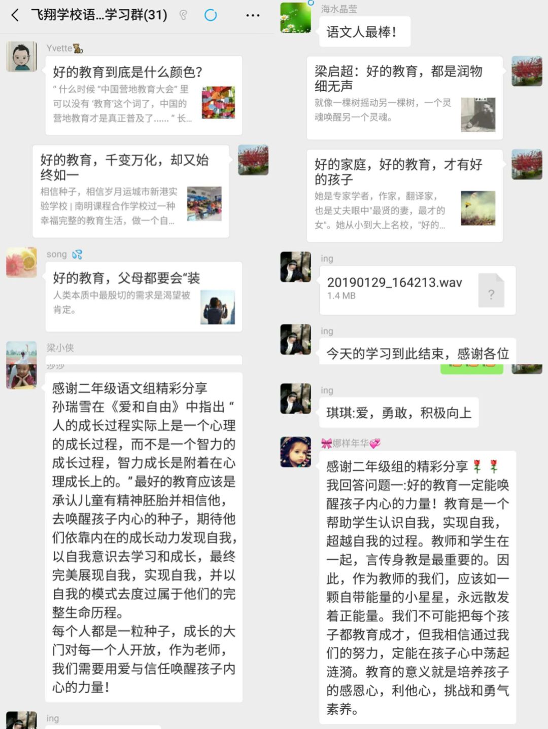 為了全面提升教師的綜合素養,打造優質的教師團隊,促進教師練就過硬的教學本領,安陽市飛翔學校小學部利用寒假,在微信平臺轟轟烈烈地開展了“在線學習”活動。