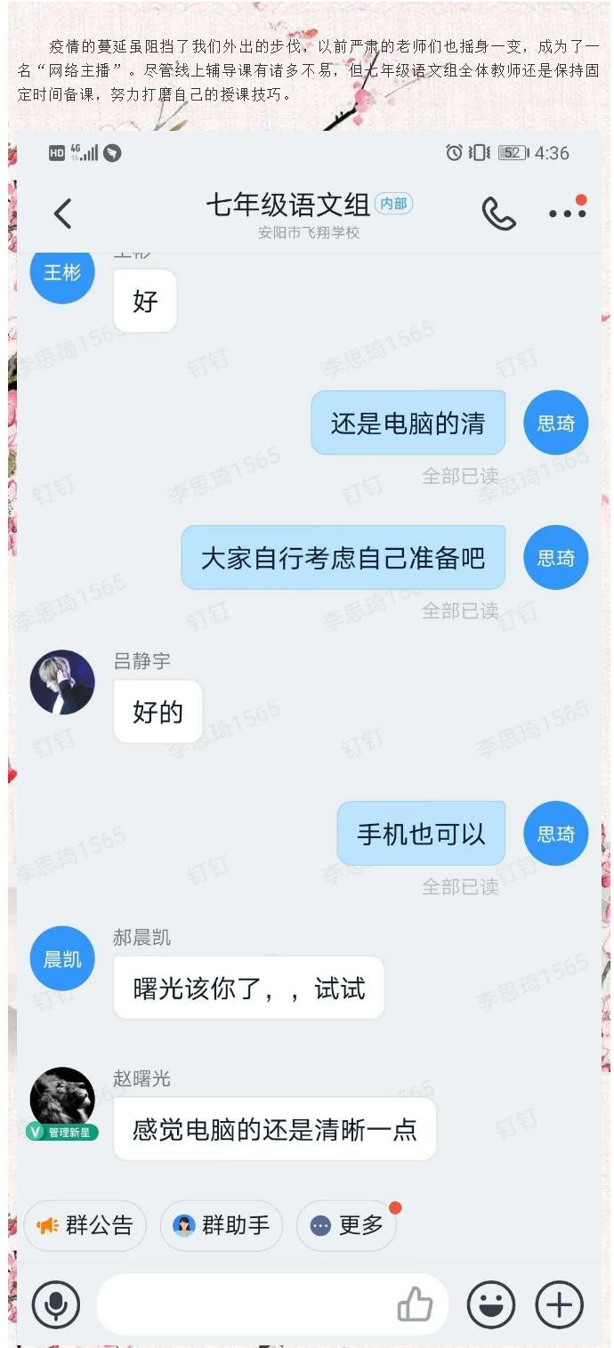 “疫”戰(zhàn)時期,師愛無邊系列之篇二——七年級語文組教研紀實