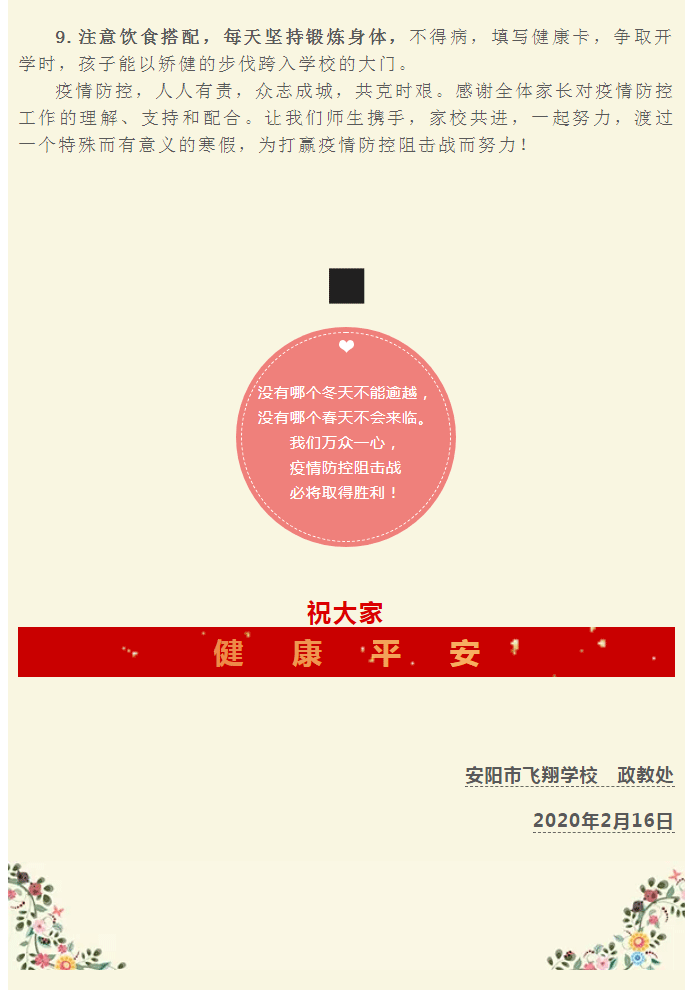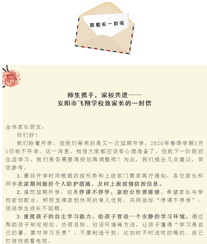 師生攜手,家校共進 —— 安陽市飛翔學校致家長的一封信